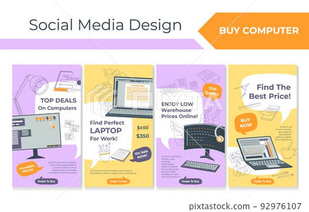 Computer shopping at social media design set - Stock Illustration ...