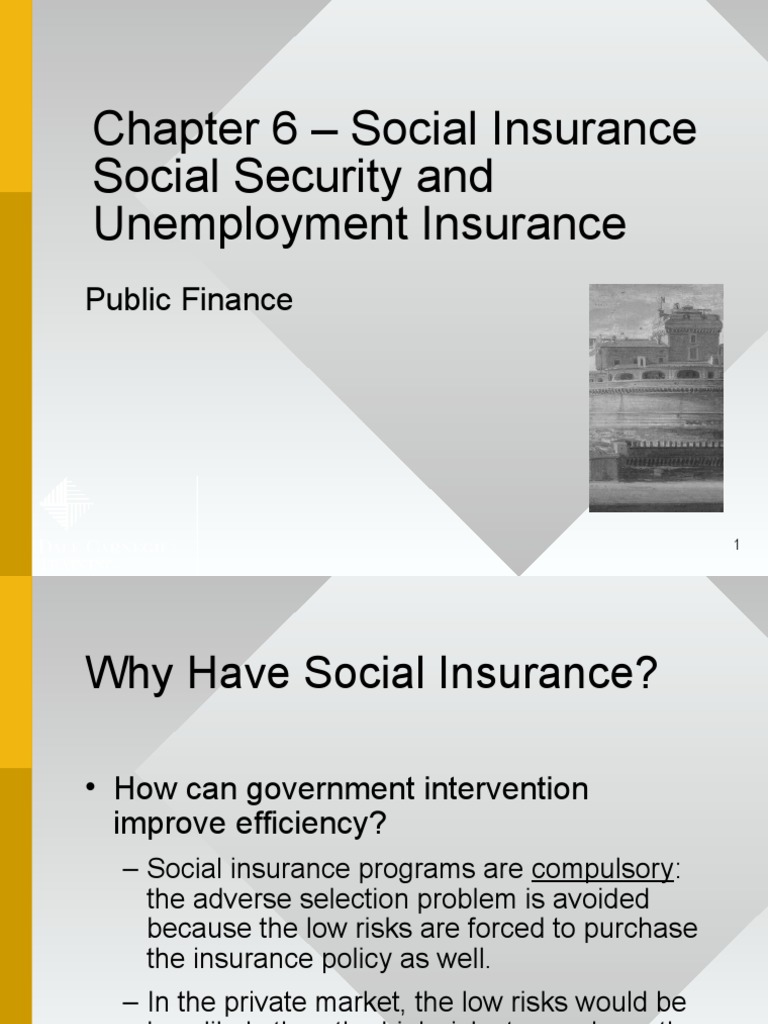 Chapter 6 - Social Insurance Social Security and Unemployment Insurance ...