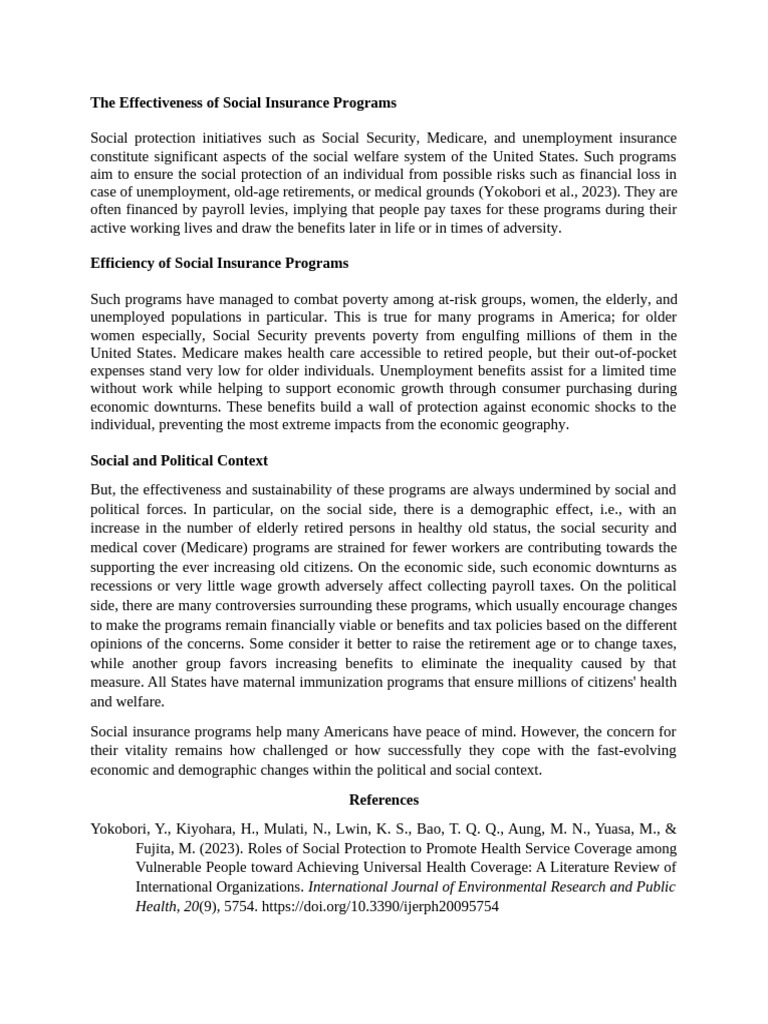 The Significance of Social Insurance Programs in Economic | Course Hero