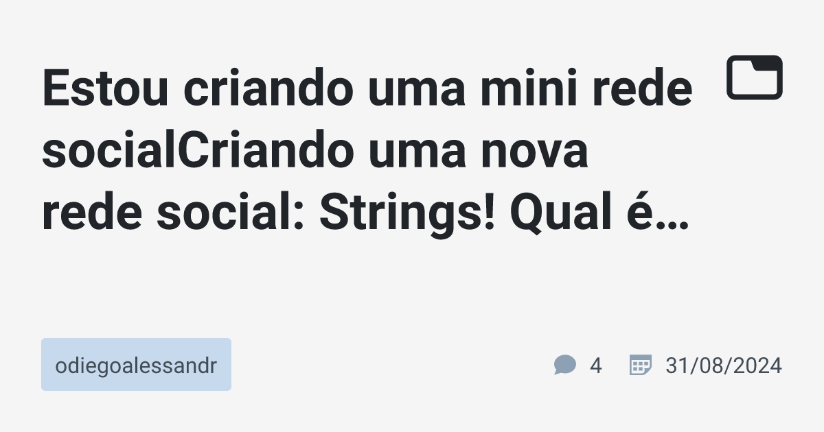 Estou criando uma mini rede socialCriando uma nova rede social: Strings ...