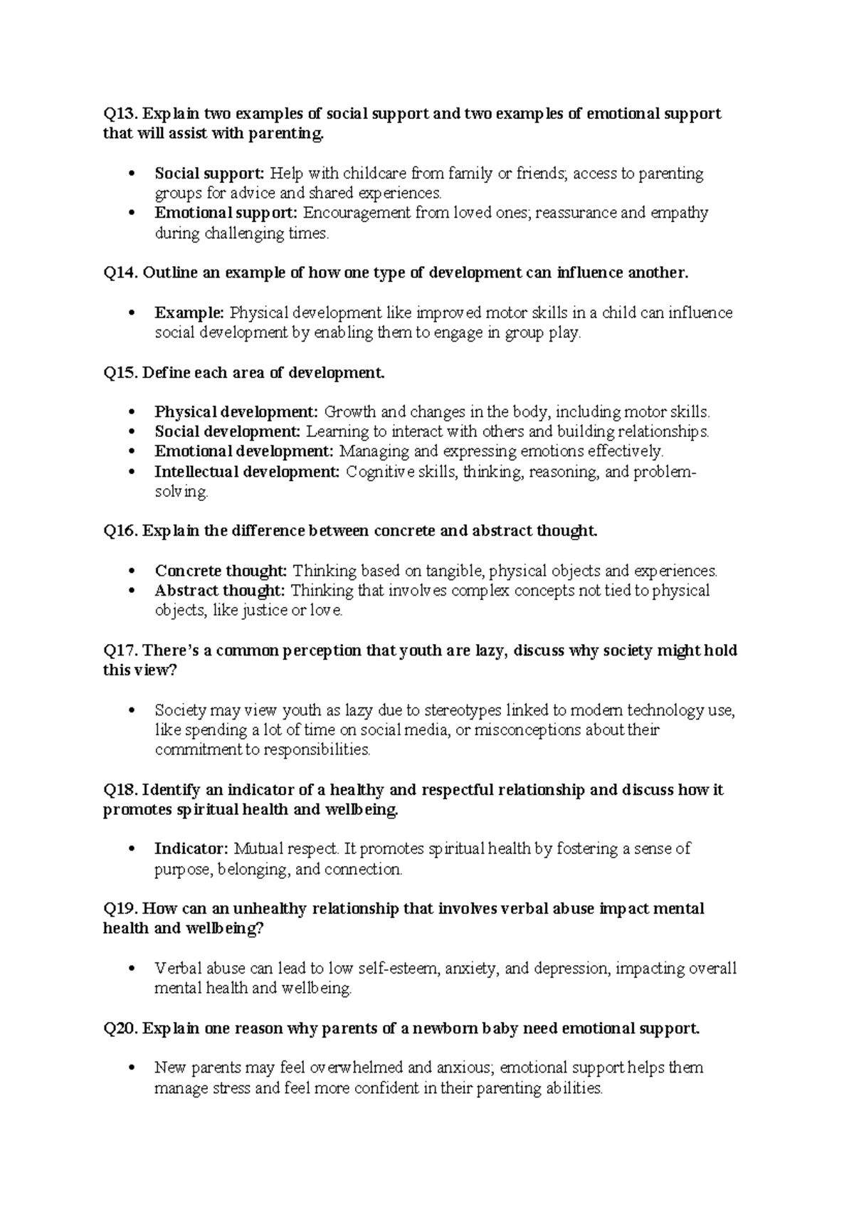 Health questions - Q13. Explain two examples of social support and two ...