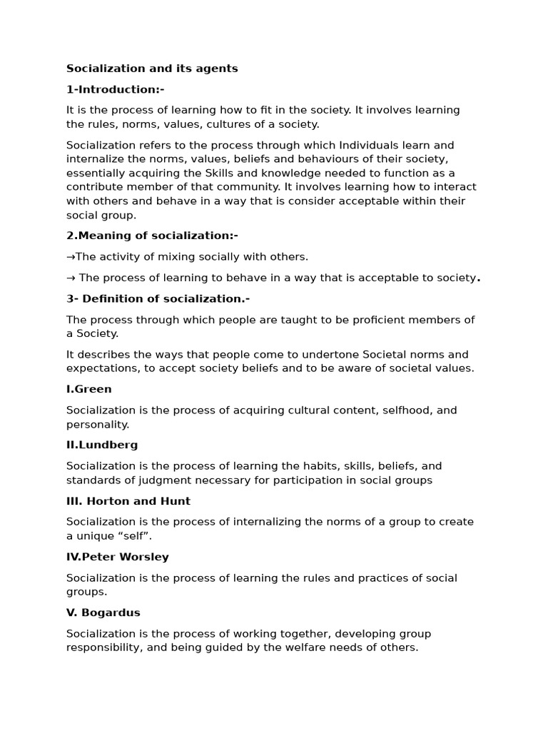 Socialization and Its Agents | PDF | Socialization | Identity (Social ...