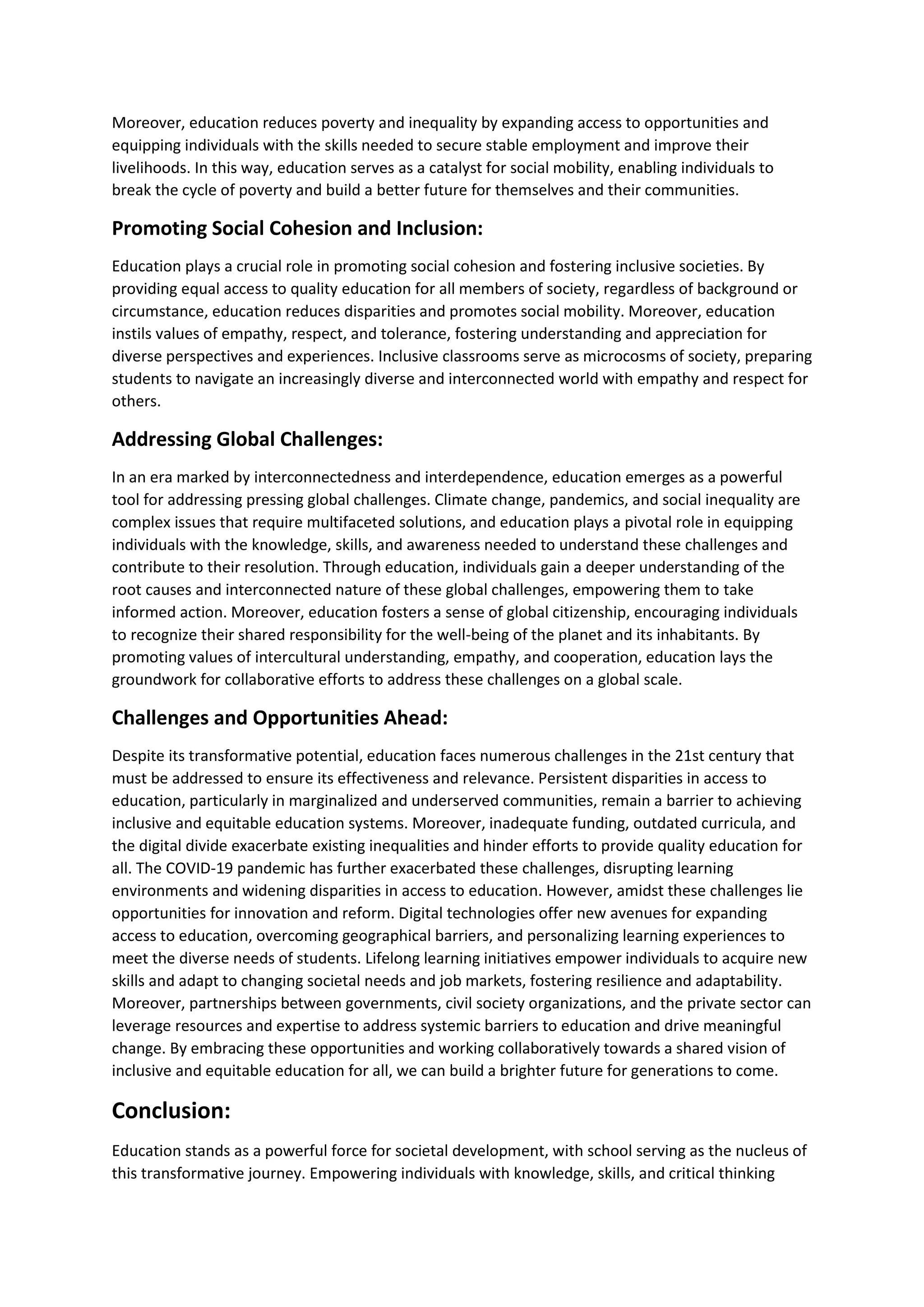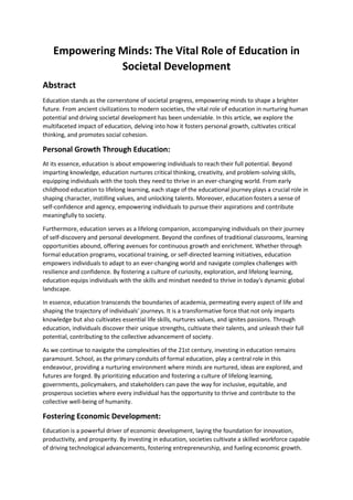 Empowering Minds: The Vital Role of Education in Societal Development | PDF