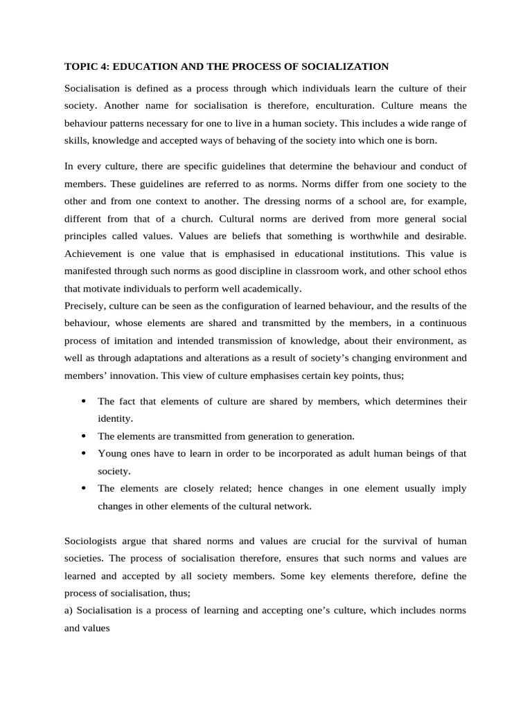 Topic 4 Socialization Process and Education | PDF | Socialization | Family