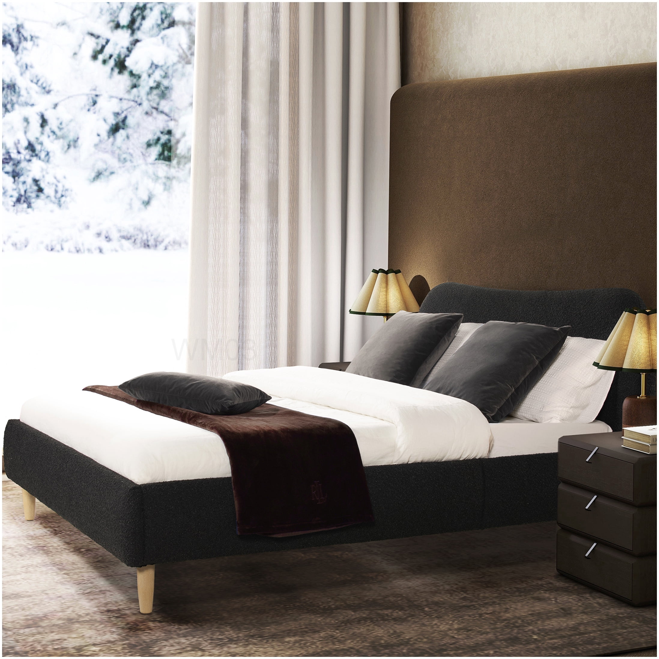 Queen Size Platform Bed Frame with Soft Boucle Headboard, Wood Support ...