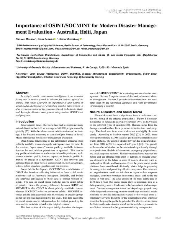 (PDF) Importance of OSINT/SOCMINT for modern disaster management ...