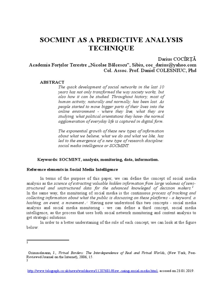 (PDF) Introducing Social Media Intelligence (SOCMINT)