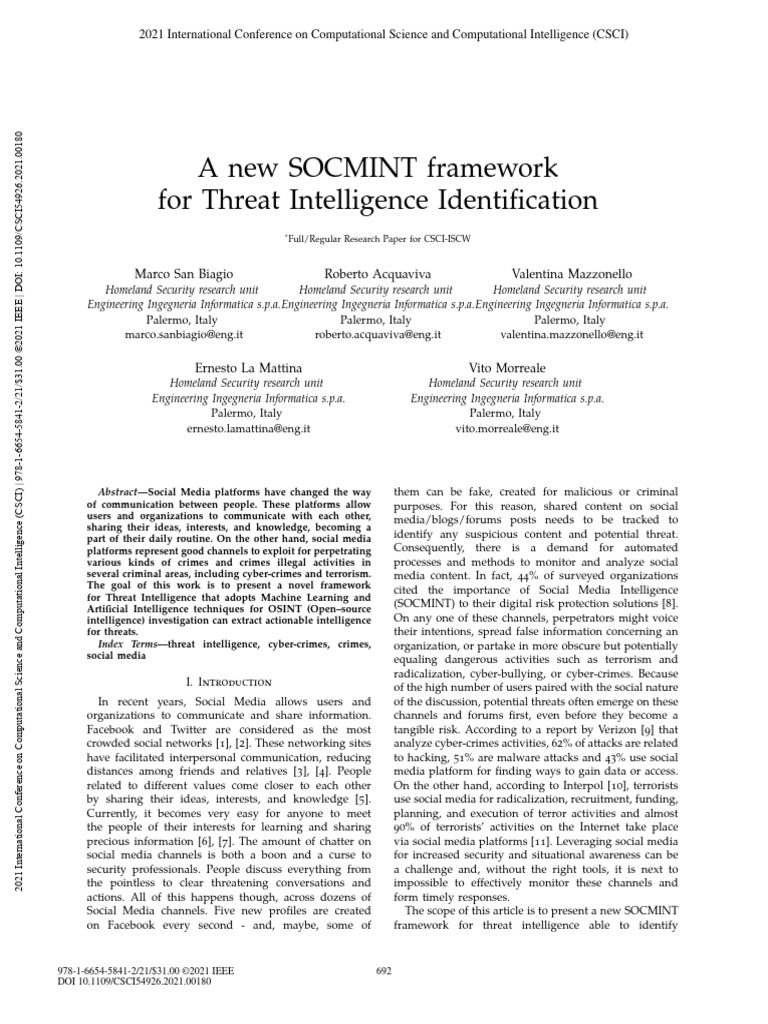 A New SOCMINT Framework For Threat Intelligence Identification | PDF