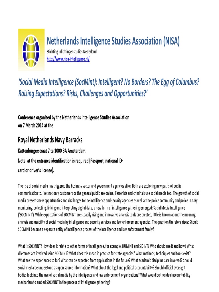 Introducing Social Media Intelligence (SOCMINT) 2012 Intelligence and ...