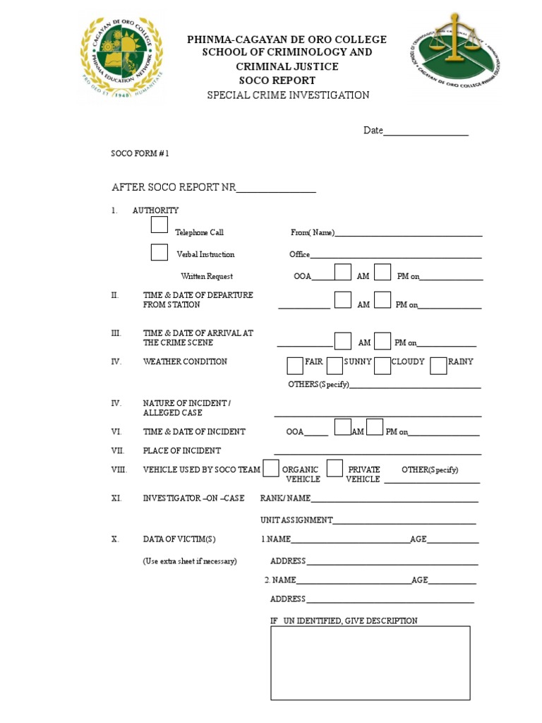 Revised SOCO Form Formats for Crime Scene Investigation - Studocu