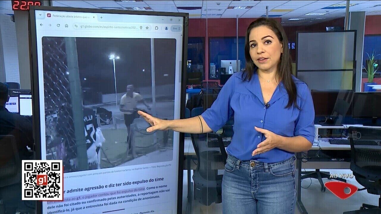 Árbitro dá cartão, leva soco de jogador e saca arma no ES; veja VÍDEO | G1