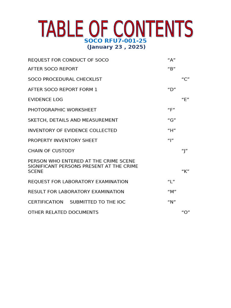 SOCO Procedure | PDF | Crime Scene | Forensic Science