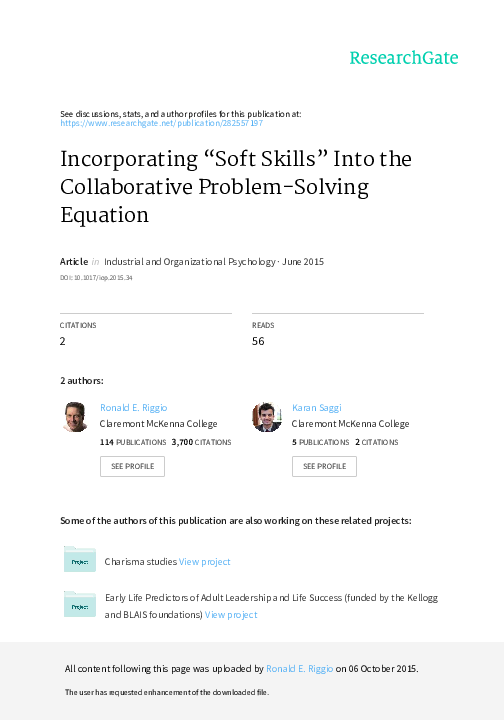 (PDF) Incorporating “Soft Skills” Into the Collaborative Problem ...