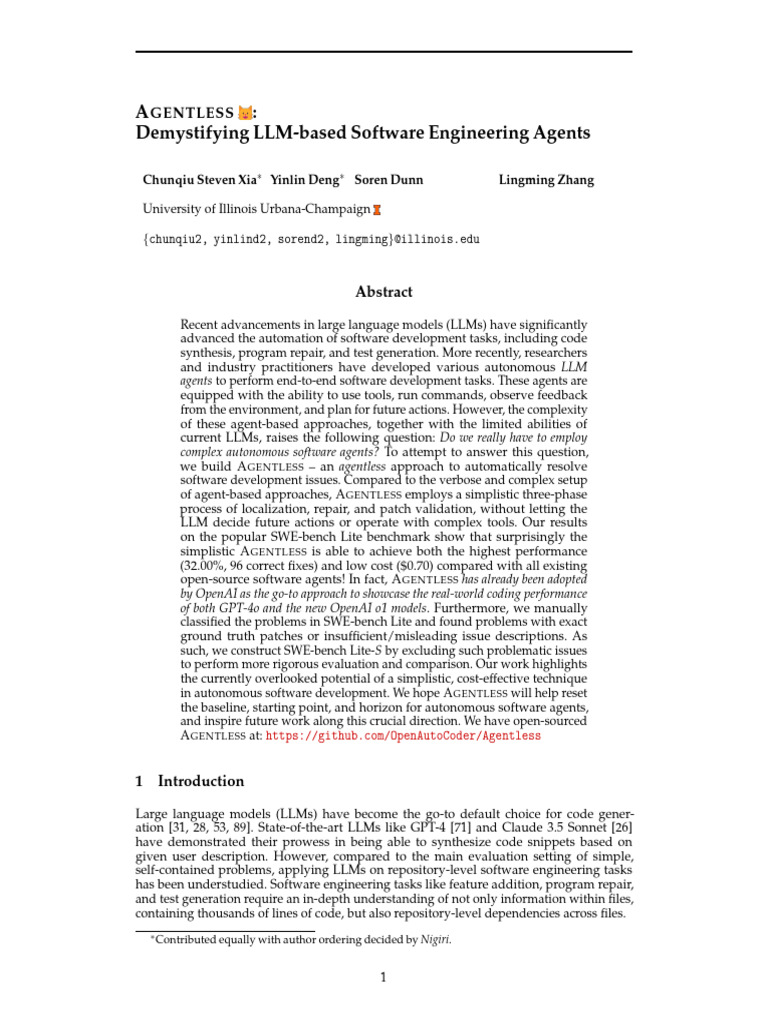 Agentless: Automating Software Fixes Agentless resolves software issues ...