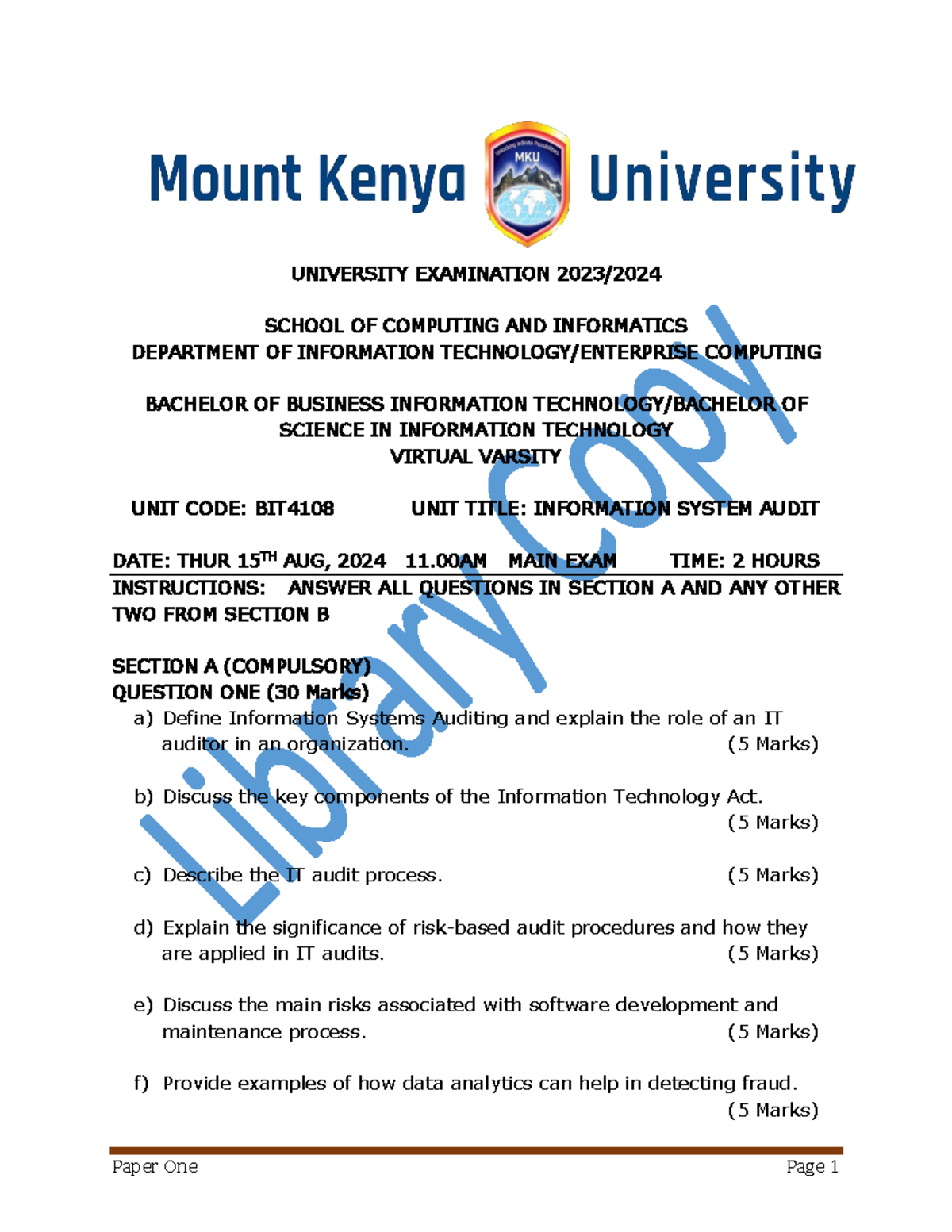 BIT4108 Final Exam: Information System Audit Overview - Studocu