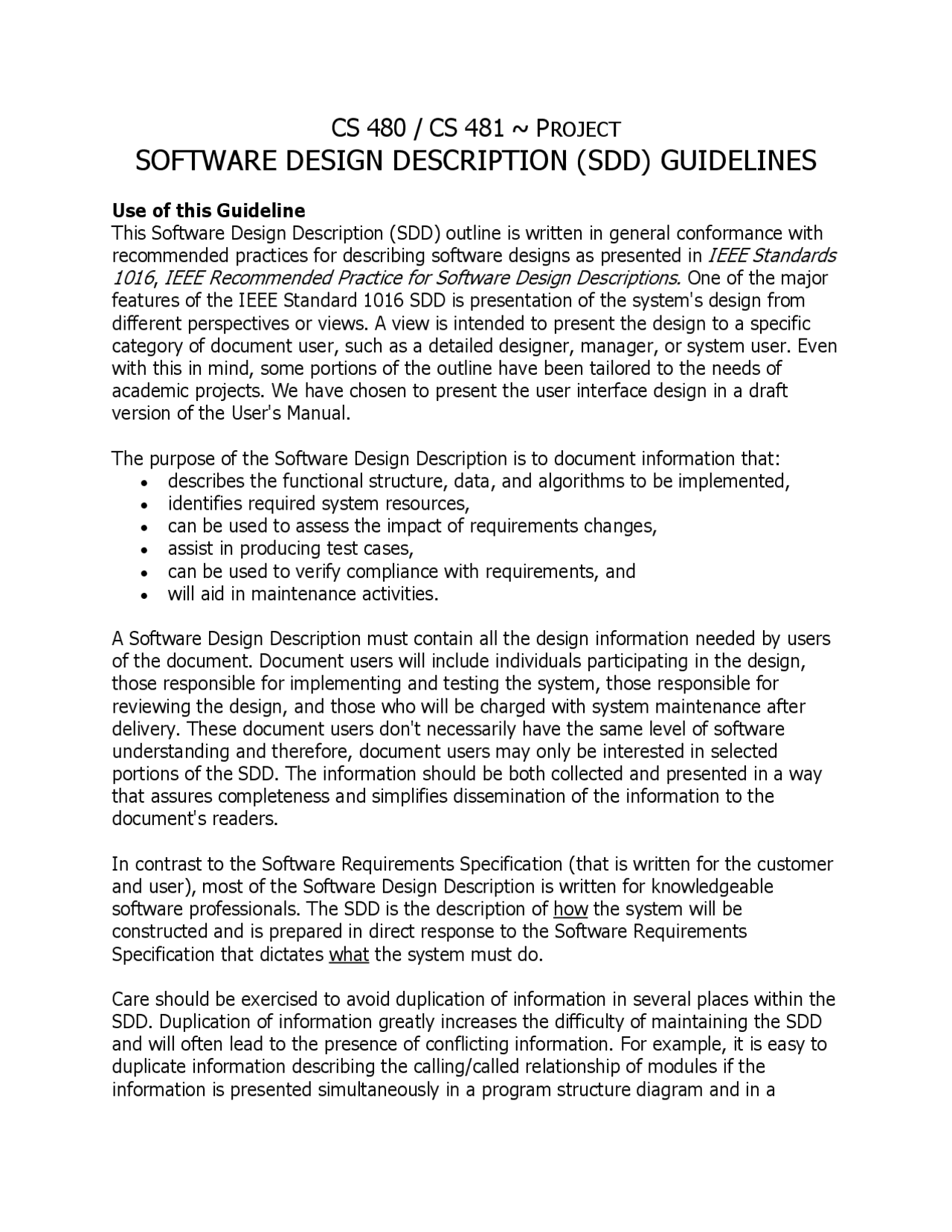 Software Design Description Guidelines - Project Report | CS 480 ...