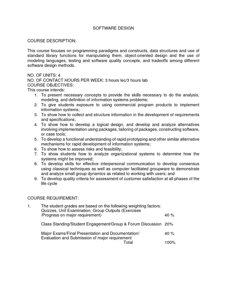 Comprehensive Guide to Software Design Course Structure | Course Hero