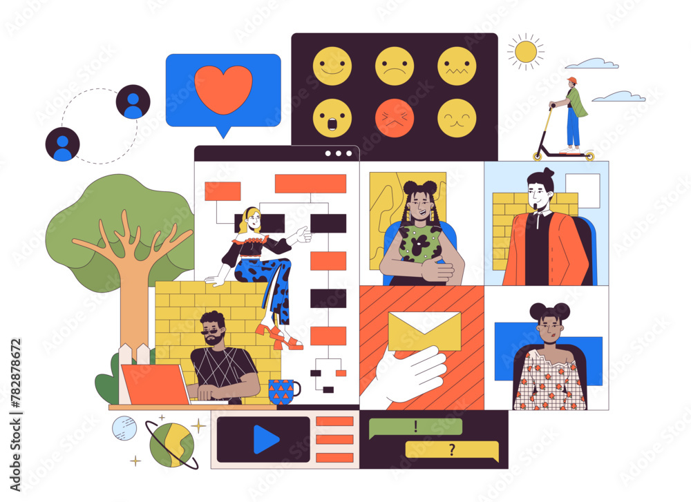Team of software developer and programmers create a social media app 2D ...