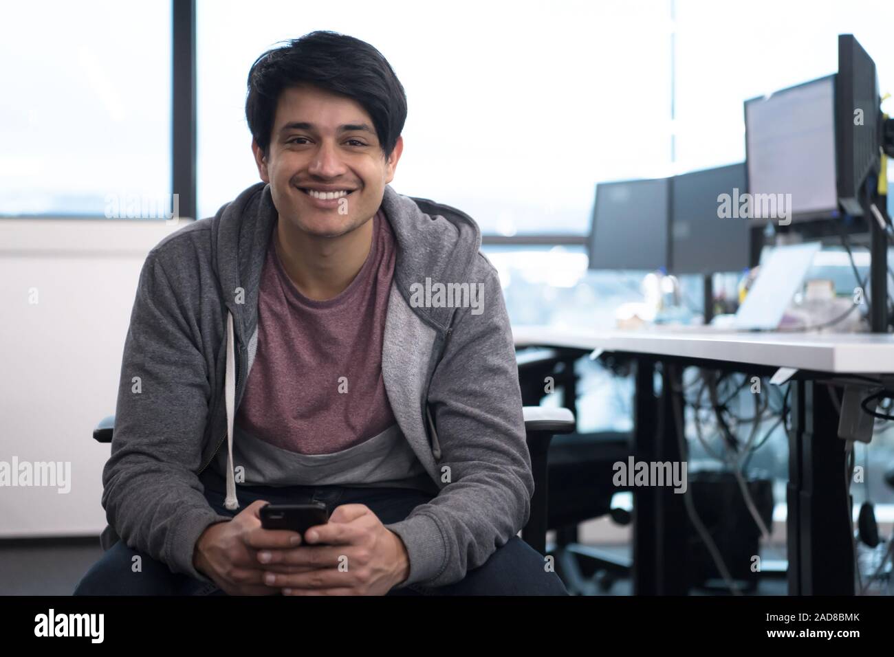 Software Developer Using Mobile Phone Connection Browsing Young Photo ...
