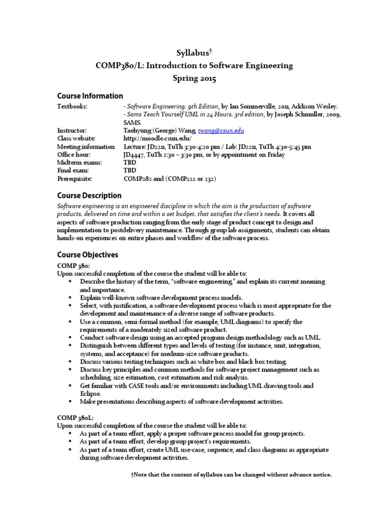Comprehensive Guide to Software Engineering Course Syllabus | Course Hero