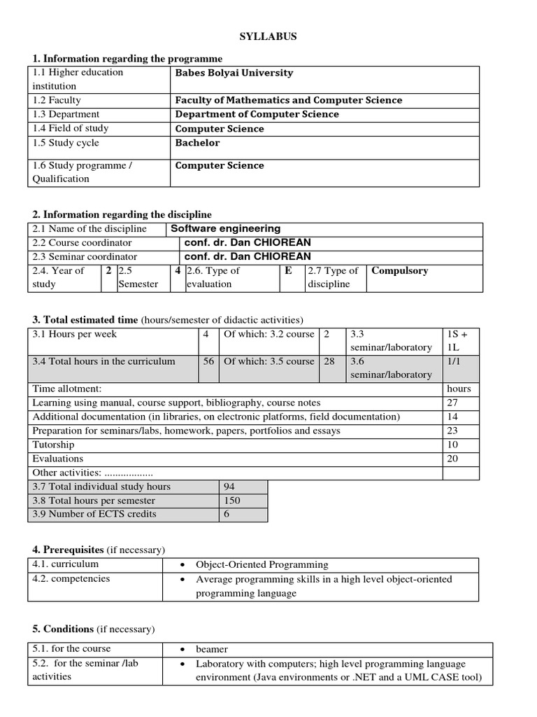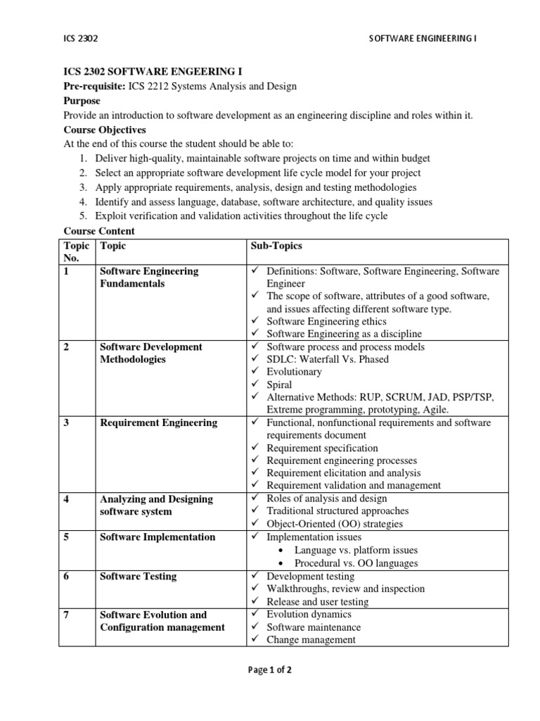 Course Syllabus in Software Engineering | PDF | Engineering | Software ...