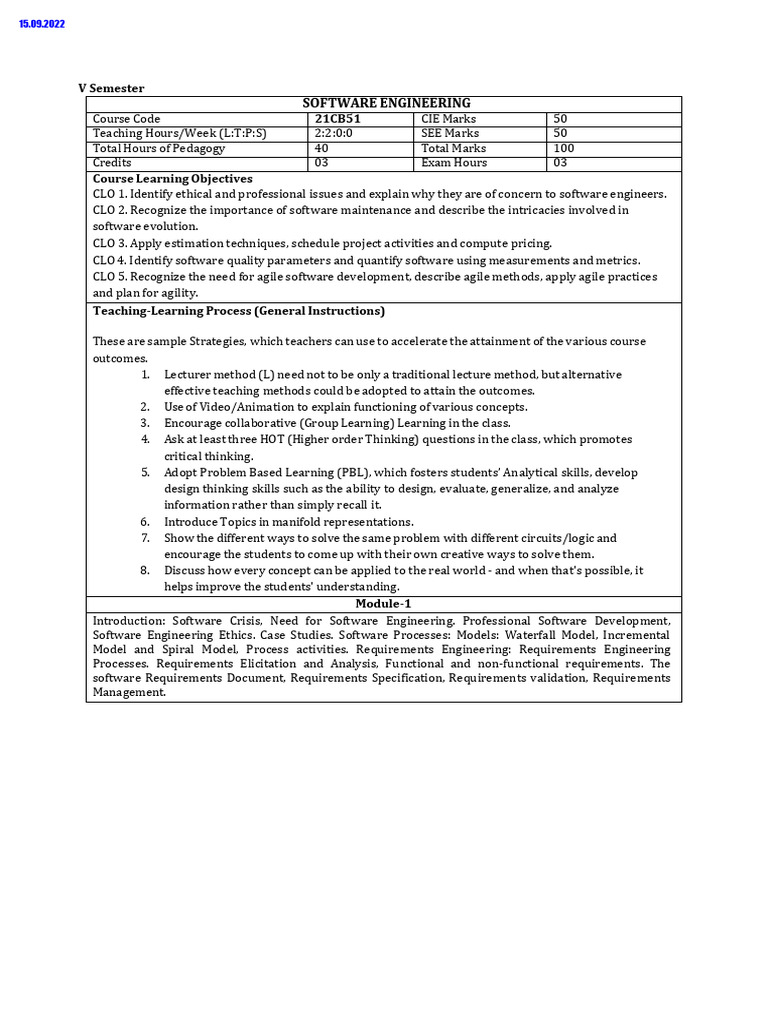 Software Engineering Syllabus-1 | PDF