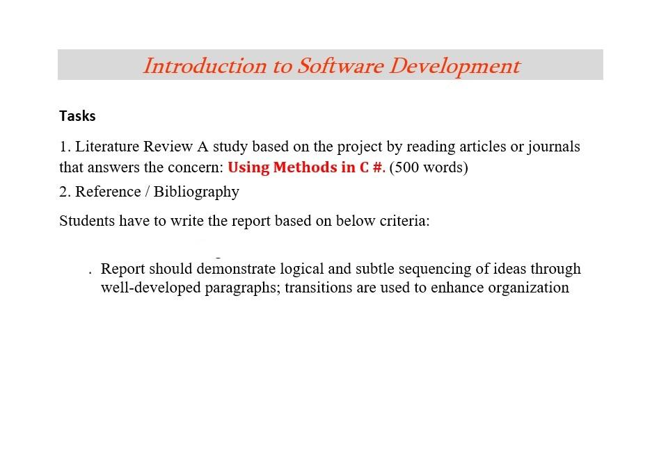 Introduction to Software Development Tasks 1. | Chegg.com