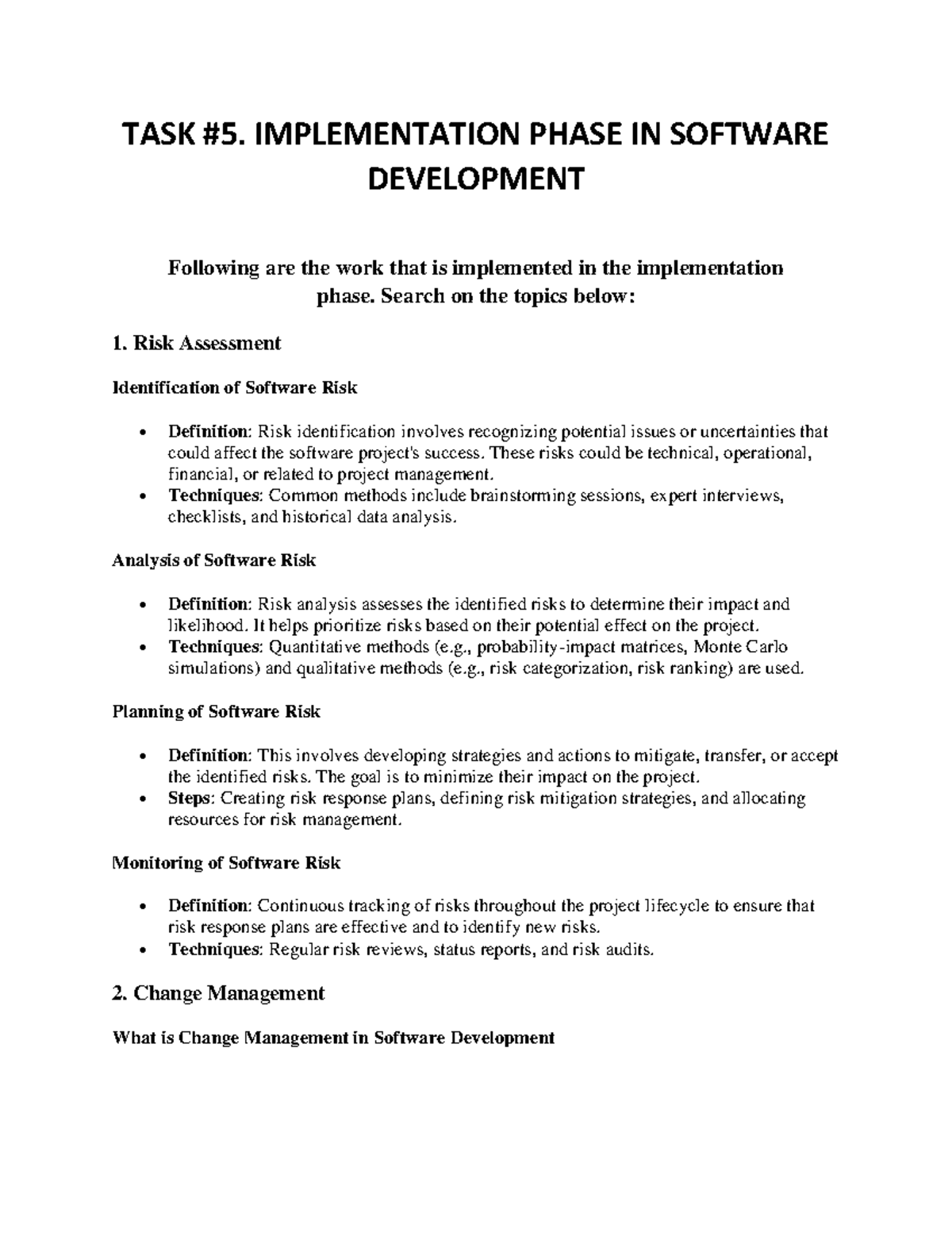 TASK #5 - Implementation Phase IN Software Development - TASK #5 ...