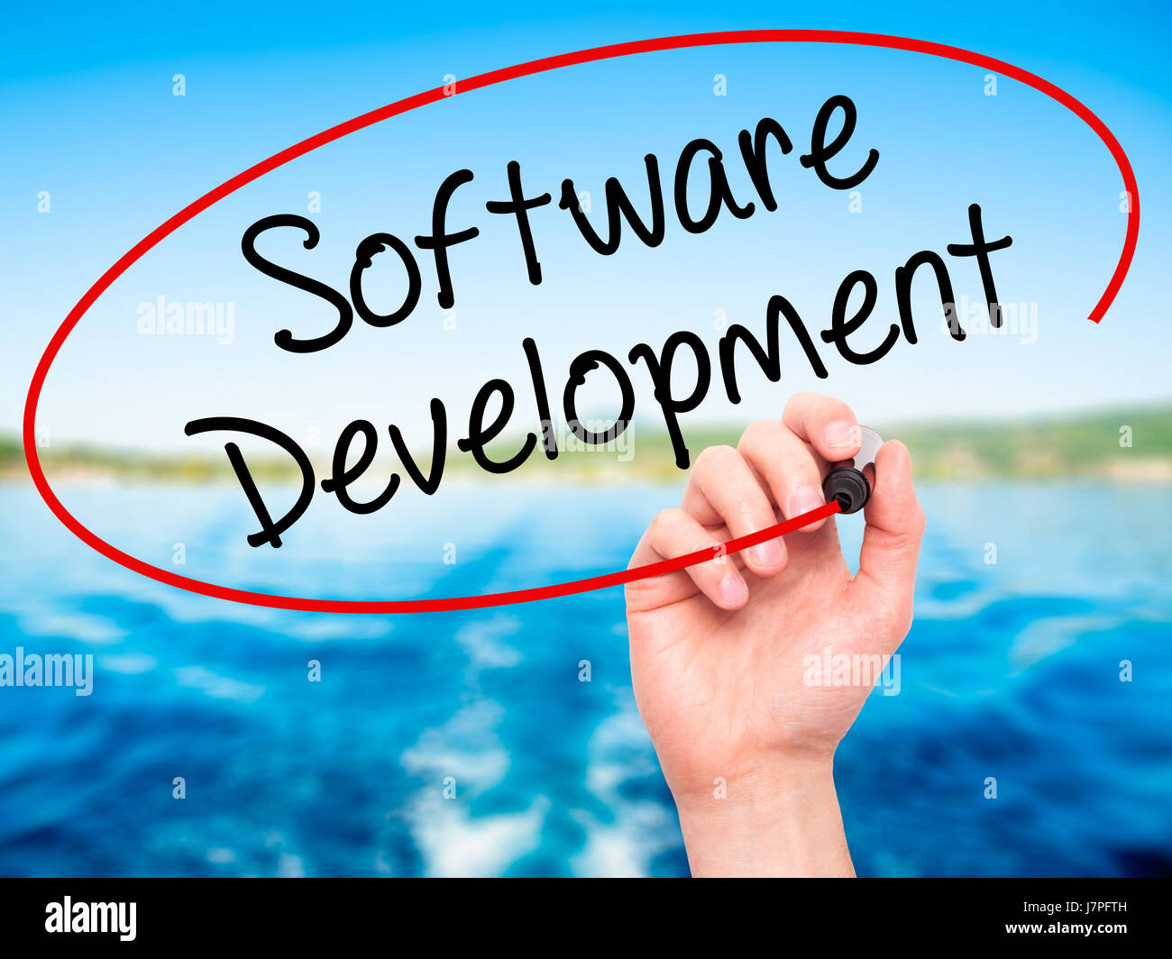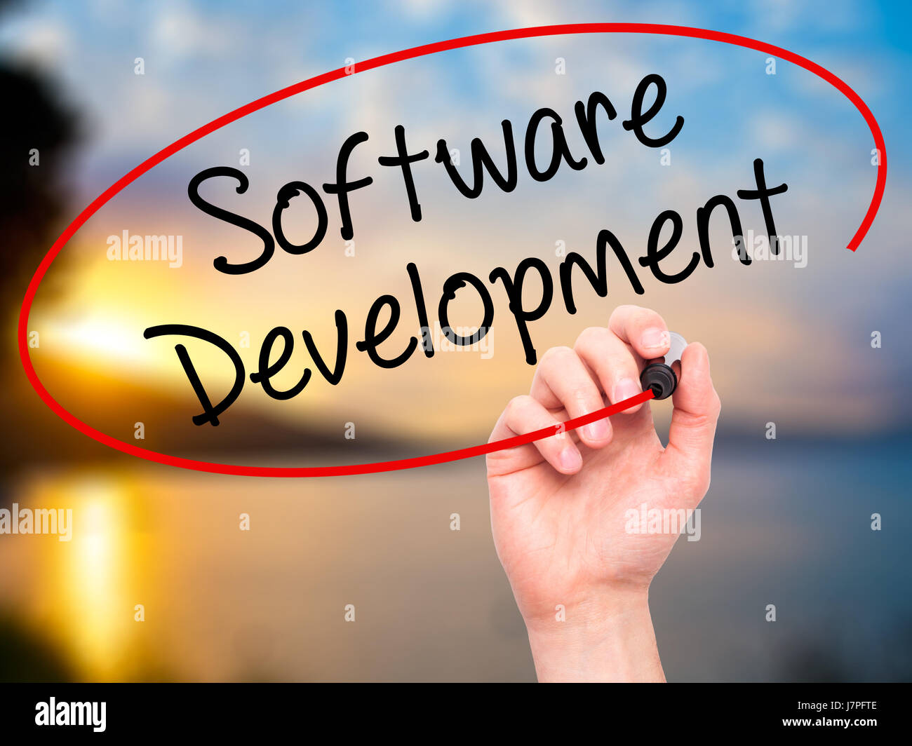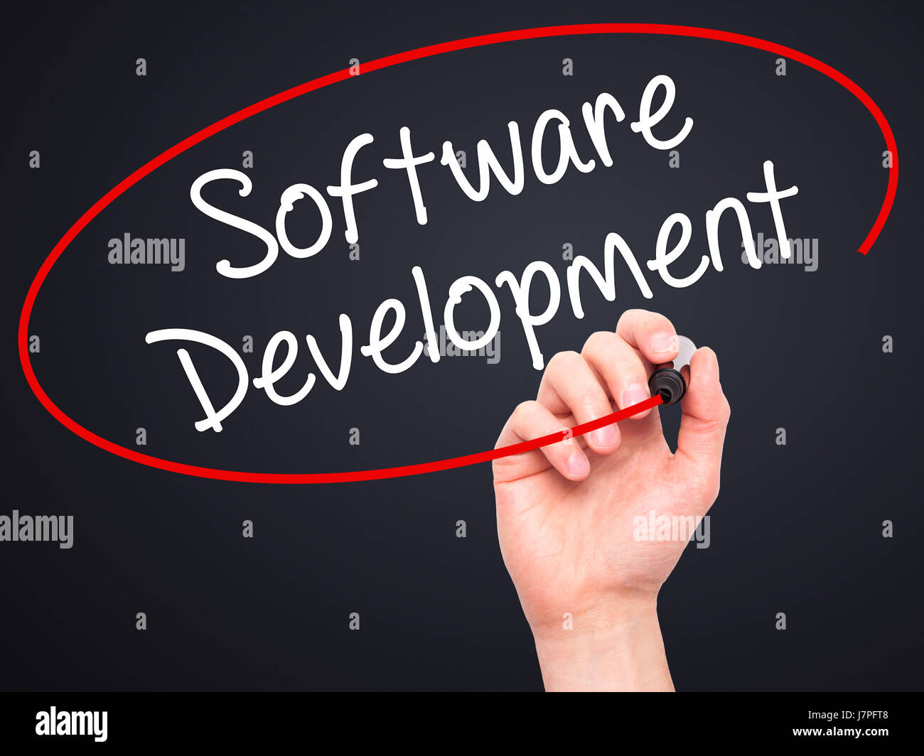 Man Hand writing Software Development with black marker on visual ...