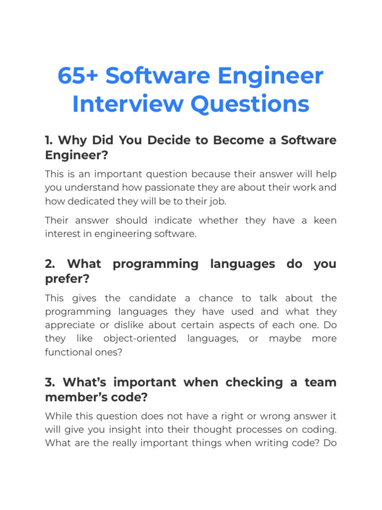 65 Software Engineer Interview Questions 1680181461 | PDF | Software ...