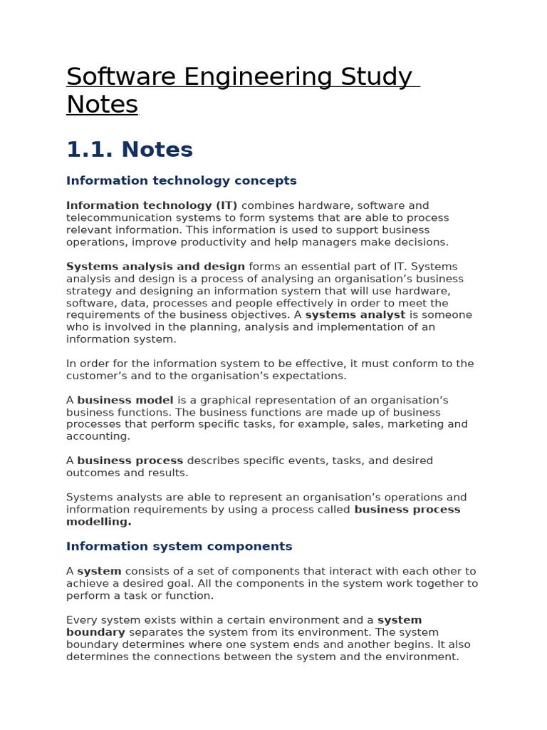Comprehensive Software Engineering Study Notes for Students | Course Hero
