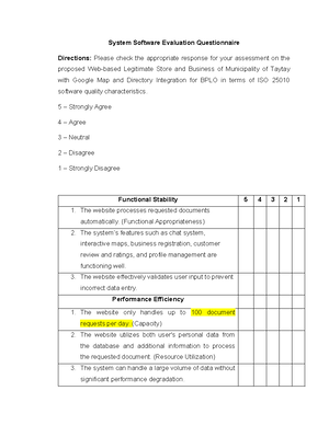 System Software Evaluation Questionnaire Auto Recovered - System ...