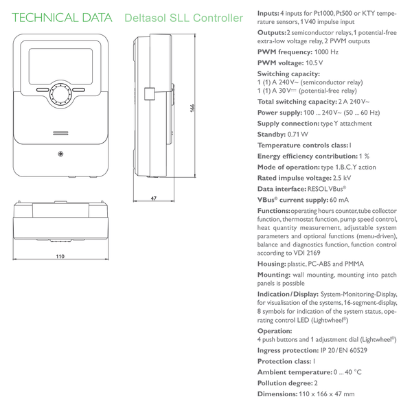 RESOL GmbH - Solar controllers, DeltaSol SL Solar controller