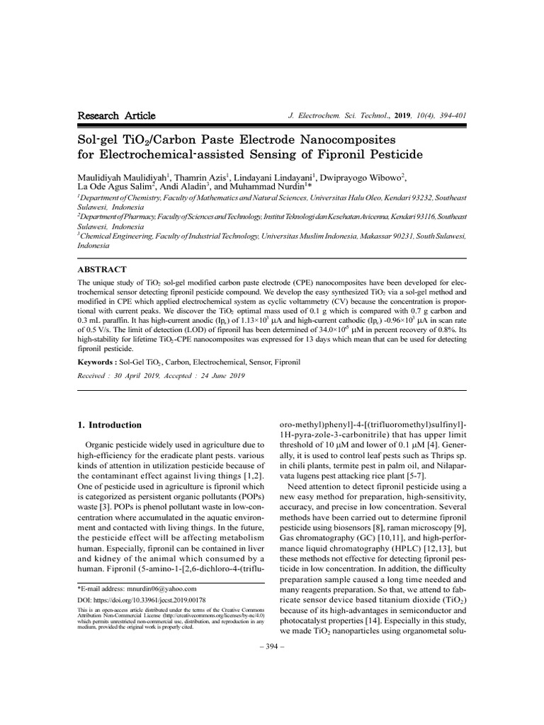 Sol-gel TiO2 Carbon Paste Electrode | PDF | Electrochemistry | Titanium ...