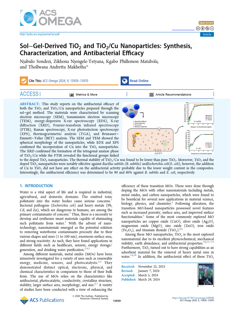 Sondezi Et Al 2024 Sol Gel Derived Tio2 and Tio2 Cu Nanoparticles ...
