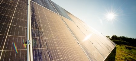 A solar array of solar panels in a solar photovoltaic (PV) energy ...
