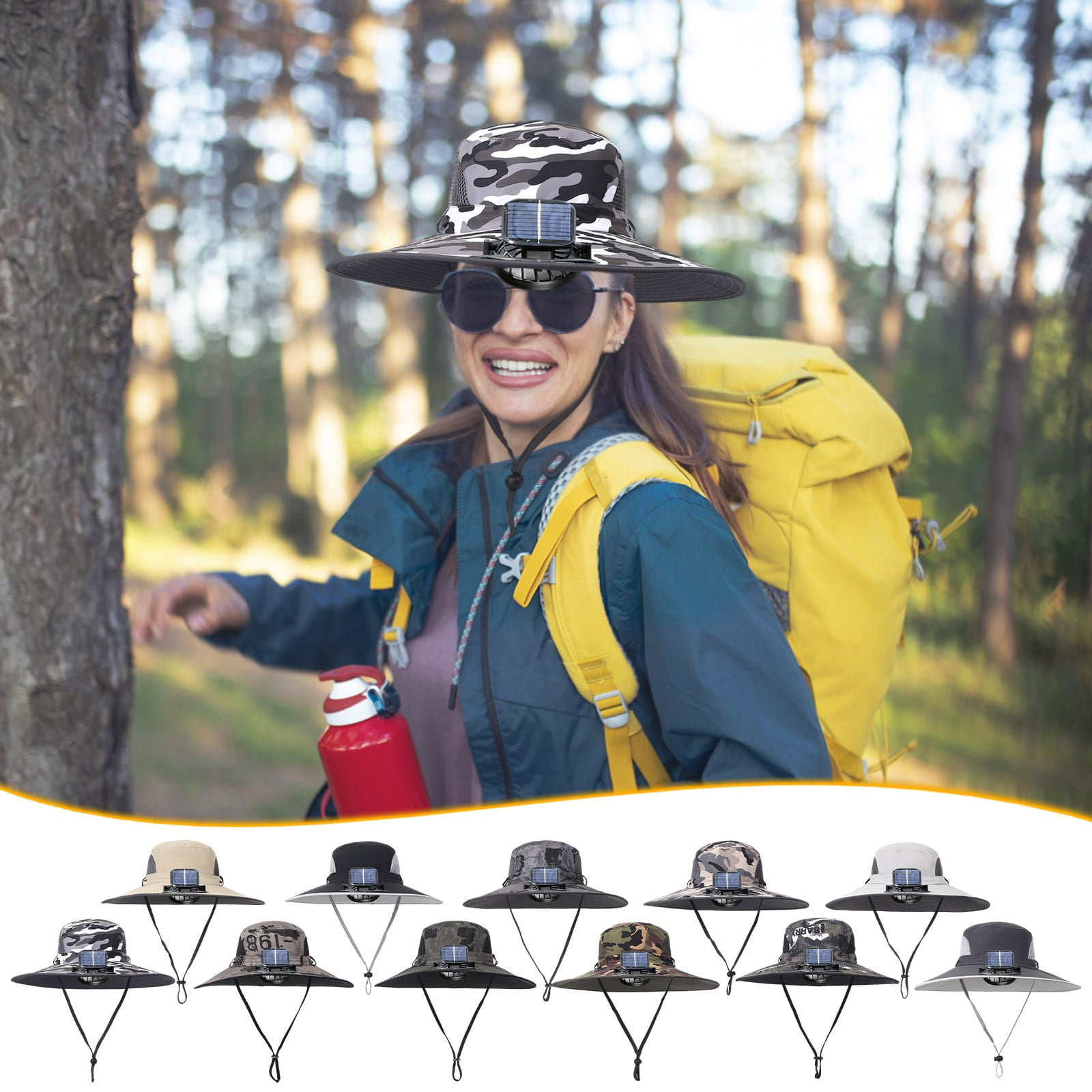Solar Fan hat, Hat with Fans Solar Power, Wide Edge Sun hat, Sun Bucket ...