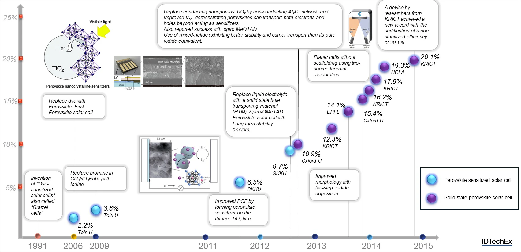 Timeline of the perovskite solar cell development from traditional to ...