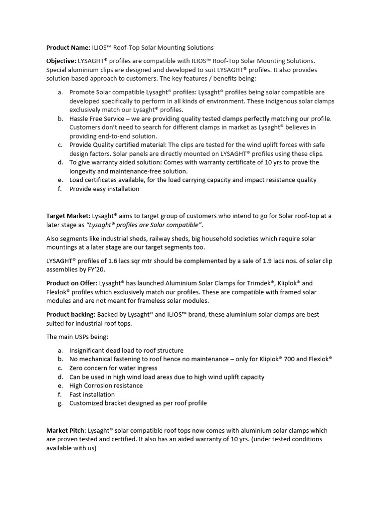 ILIOST Roof-Top Solar Mounting Solutions - Launch Docket - Ver 3 | PDF ...