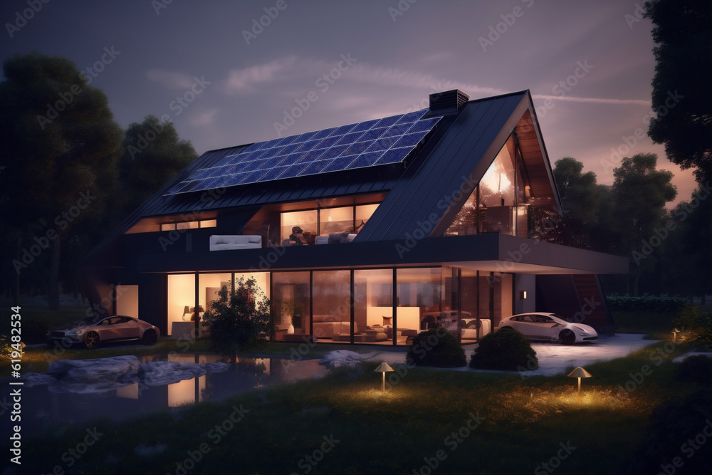 Premium AI Image | A modern smart home with solar panels rooftop system ...
