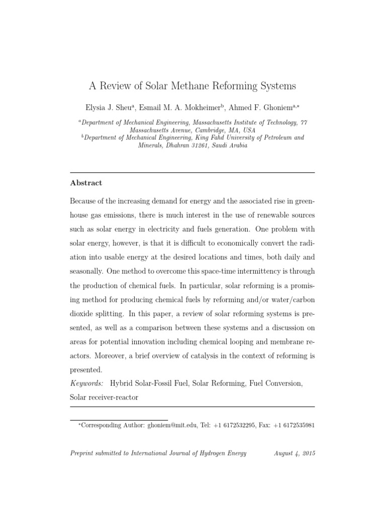 A Review of Solar Methane Reforming Systems | PDF | Methane | Catalysis