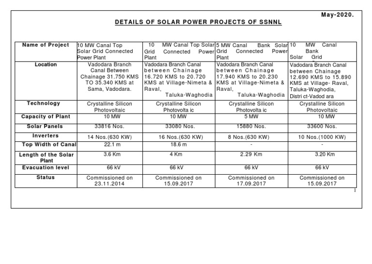 Solar Project Schedule With Capacity And Location Details ...