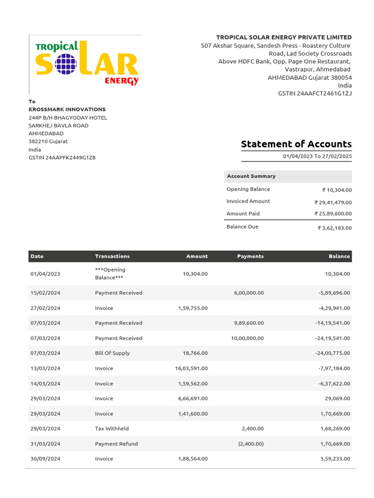 Tropical Solar Energy Account Summary | PDF | Invoice | Government Finances