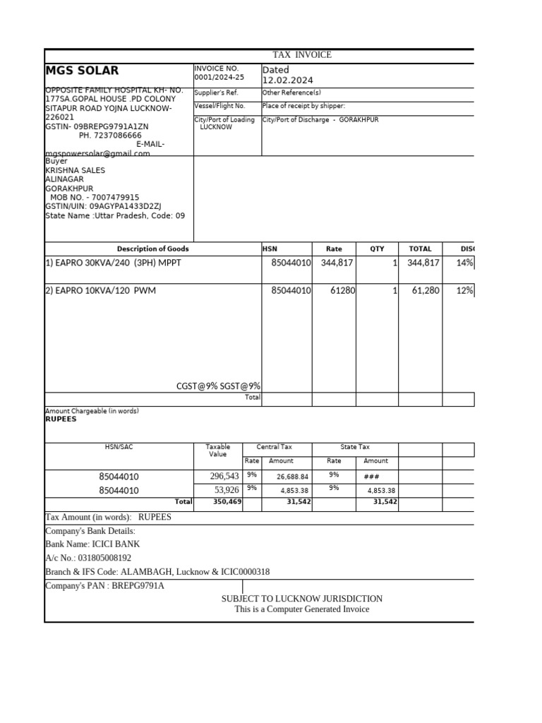 Solar Bill 24-25 | PDF | Invoice | Taxes