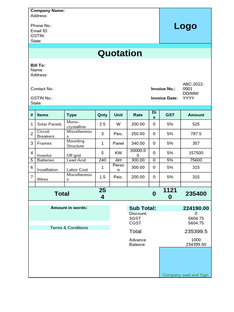 Solar Quotation Invoice Template | PDF | Sustainable Energy | Power ...