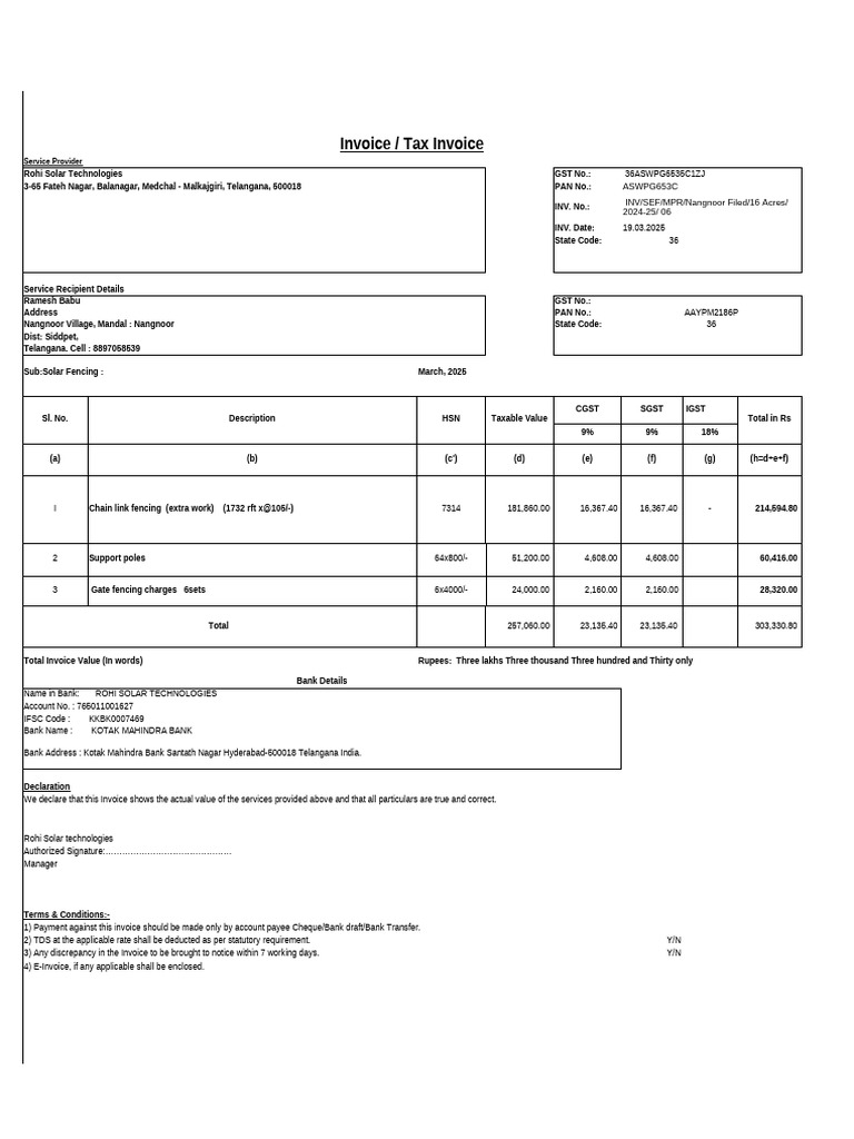 Solar Fencing Invoice - Rohi Technologies | PDF | Public Finance | Taxation