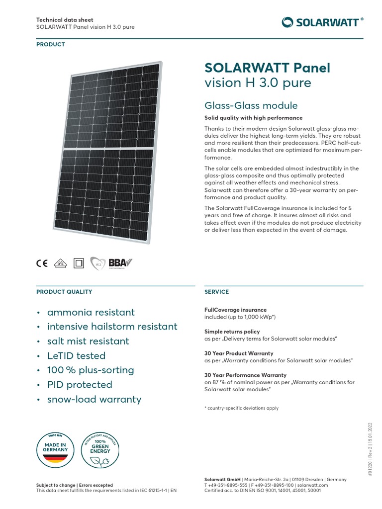 Datasheet SOLARWATT Panel Vision H 3.0 Pure en | PDF | Solar Cell ...