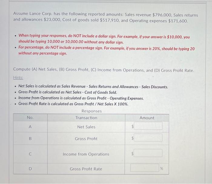Solved Assume Lance Corp. has the following reported | Chegg.com