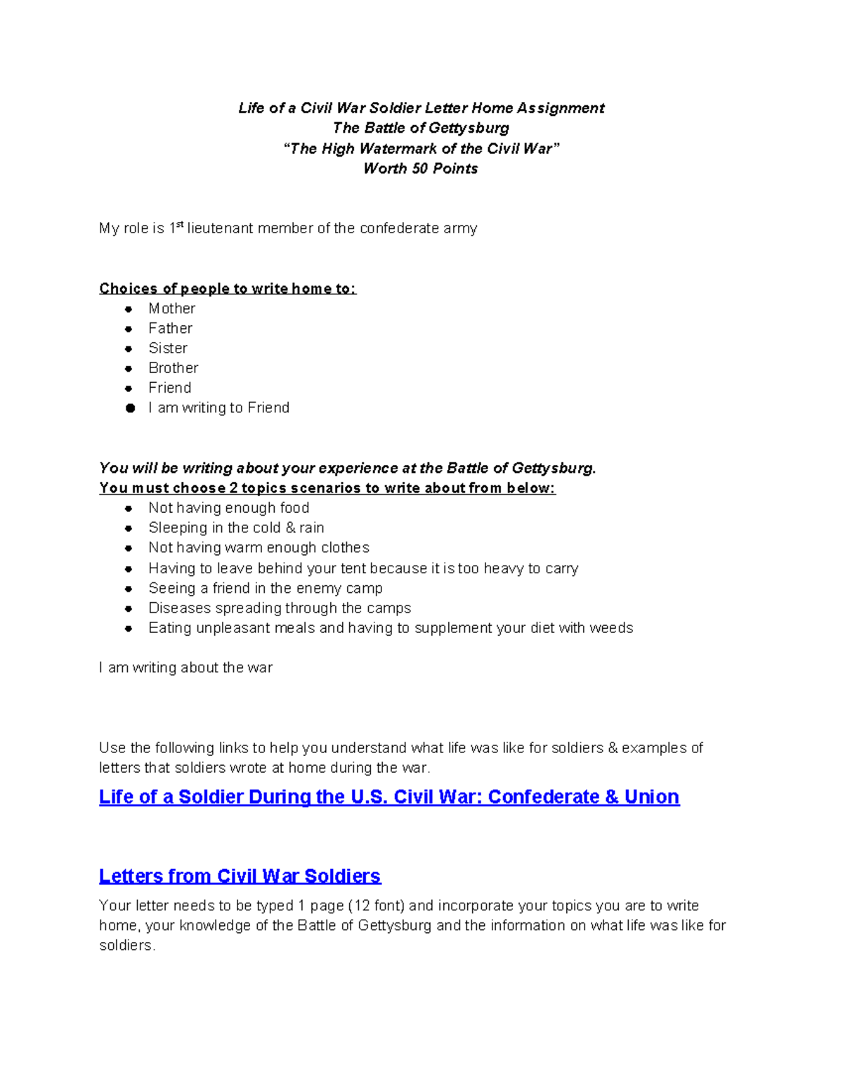 - Life of a Civil War Soldier Letter Home Assignment - 3679679 - Life ...