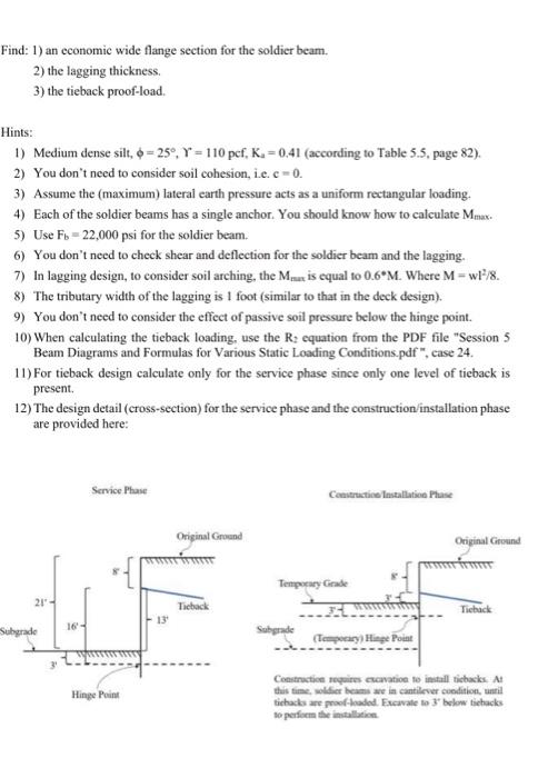 Homework Assignment 7 Soldier Beam and Lagging System | Chegg.com
